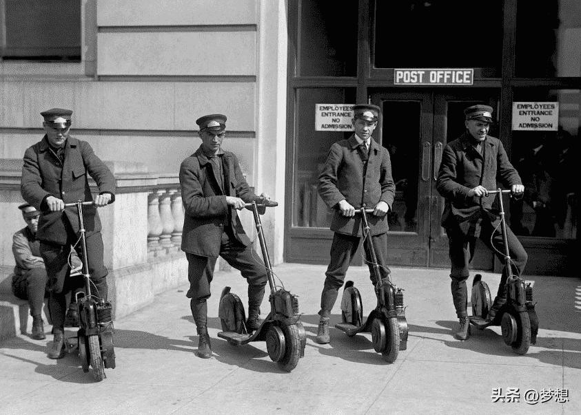 (07)1915年,美国邮政服务公司的四名邮递员,收到了公司派发的新装备,这是一种便捷的机动踏板车,是为了让邮递员们的收发工作,更加方便快捷。当时美国的纽约,以及德国的邮政公司,都投入使用,并且进行了测试。