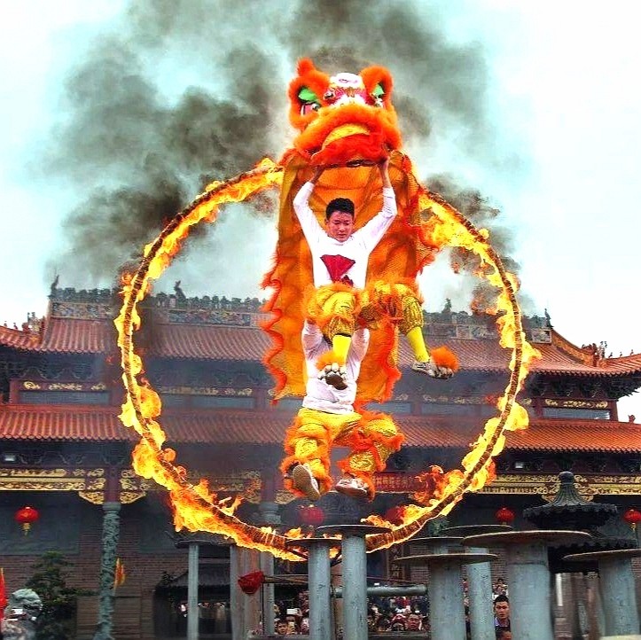 另一种说法则与佛教的传入有关。佛教在东汉时期传入中国后,逐渐在中国大地广泛传播。狮子在佛教中被视为护法神兽,具有神圣的地位。随着佛教的兴盛,舞狮活动也在寺庙的庆典和仪式中逐渐兴起,并融入了佛教的文化元素。舞狮者通过模仿狮子的各种动作,如跳跃、翻滚、戏球等,展现狮子的威严和力量,寓意着驱邪避灾、守护平安。