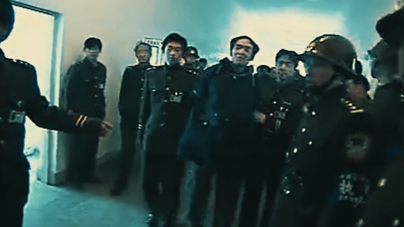 这个画面就是几名罪犯生前最后几小时,警察正在给几名罪犯砸开脚镣,这种脚镣,每一个都重达十几斤,为了就是防止重刑罪犯作出一些不理智的事。