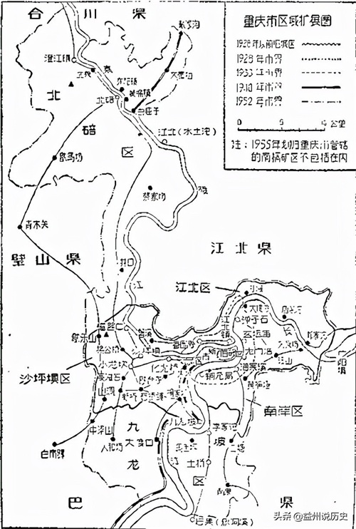 重庆是1929年设市,1933年和1940年两次扩充,辖区,范围主要是老巴县的城区,就是渝中半岛,加上巴县的长江南岸沿长江部分,江北县嘉陵江沿岸部分,沙坪坝一部分,九龙坡小部分,面积有328平方公里。简单一句话,重庆最开始设市时,除了江北部分,就是把巴县地理位置好,经济发展好的地方归为重庆市区了,巴县剩下的地方就是乡场和农村了。