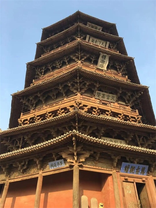 根据《应州志》记载,应县木塔建立于公元1056年(辽清宁二年),塔高65.83米,是我国现存最古老、最高大的纯木结构。2016年释迦塔获得世界吉尼斯纪录——世界现存最高的木塔。