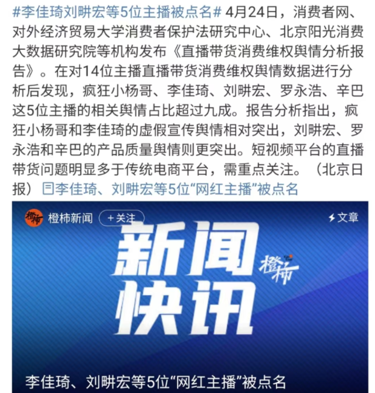 简单说,就是带货质量不好,介绍商品虚假宣传以此来赚钱。