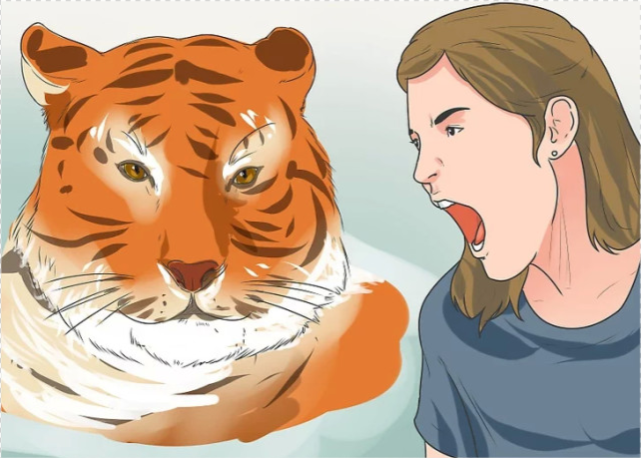不要以任何方式与老虎对立。切勿与任何类型的老虎或大型动物作对,尤其是老虎,如果产生侵略性的举动,老虎会通过进攻来捍卫自己。你可以大喊大叫,有些怂的老虎以为你在呼叫队友就会仓皇逃跑。