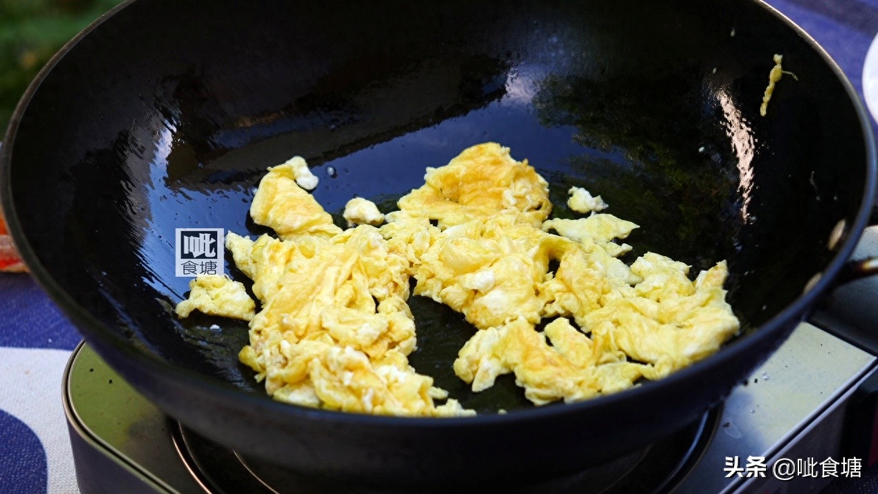 6, 锅里适量油,烧热后先炒鸡蛋,成型滑散后盛出。