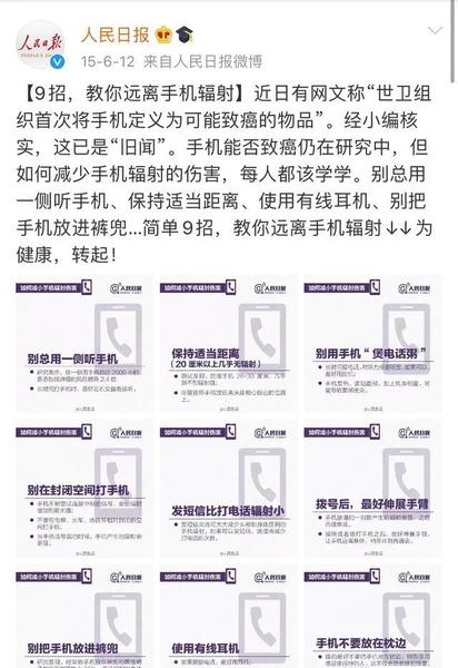 不过人民日报提供了9种日常减少手机辐射的方式,比如保持适当的距离使用手机,别在封闭空间打电话等等。