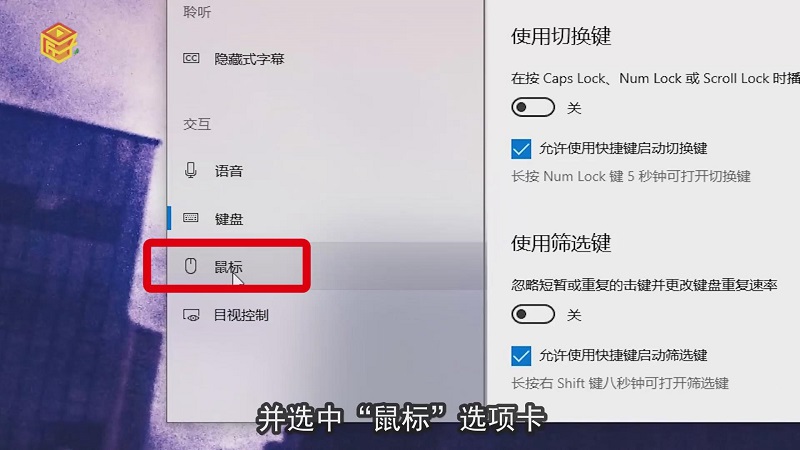 3.将会跳出“设置功能选项”,并选中“鼠标”选项卡,把“使用小键盘控制鼠标”选项关闭,然后小键盘上的数字键就可以使用了 。