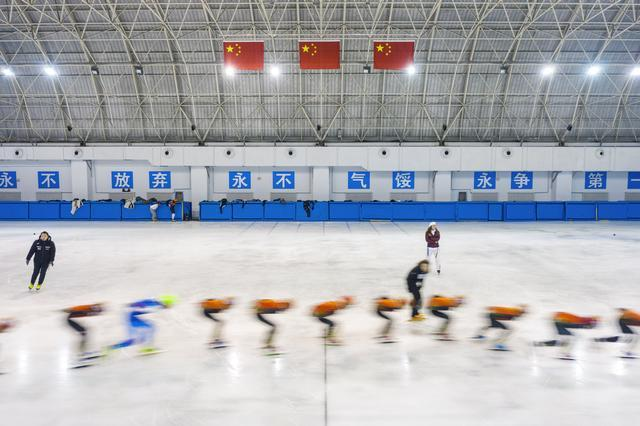七台河职业学院短道速滑训练中心的孩子们正在进行训练 来源:新华社