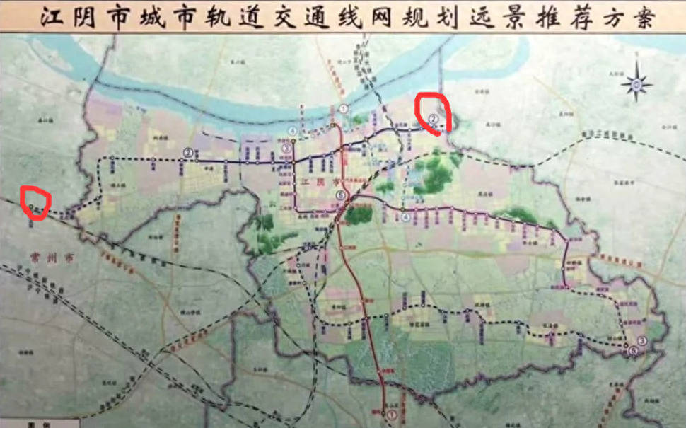 上图中红圈标记出来的即为3号线首尾站,3号线最北端在靠近长江,应该是望江公园西侧,也就是在第二过江通道附近,最南端在顾山镇。3号线贯穿顾山,新桥,花式,周庄,途径江阴高铁站,再由南闸转入夏东路附近。