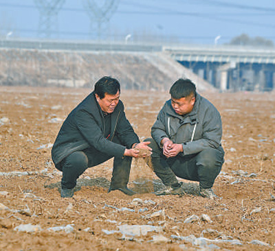 河北省永清县刘街乡农户在休耕地块上查看土壤情况。刘欣羽摄