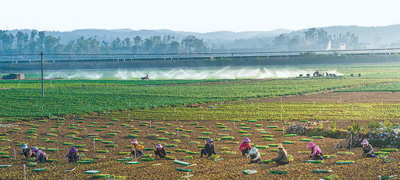 云南省砚山县平远镇农民在移栽冬季轮作蔬菜。王国礼摄