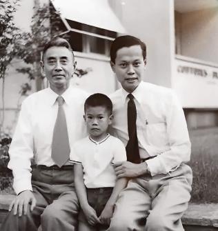 1982年,杨振宁全家福。左起:杜致礼、杨振宁、杨光诺、杨又礼、杨光宇