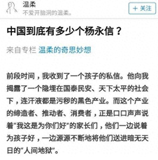 文章开头说到的@温柔,一篇《中国到底有多少杨永信》,开始带头抨击豫章书院。
