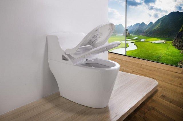 对准安装孔及四周的玻璃胶装上坐便器,慢慢地向下压直到水平。