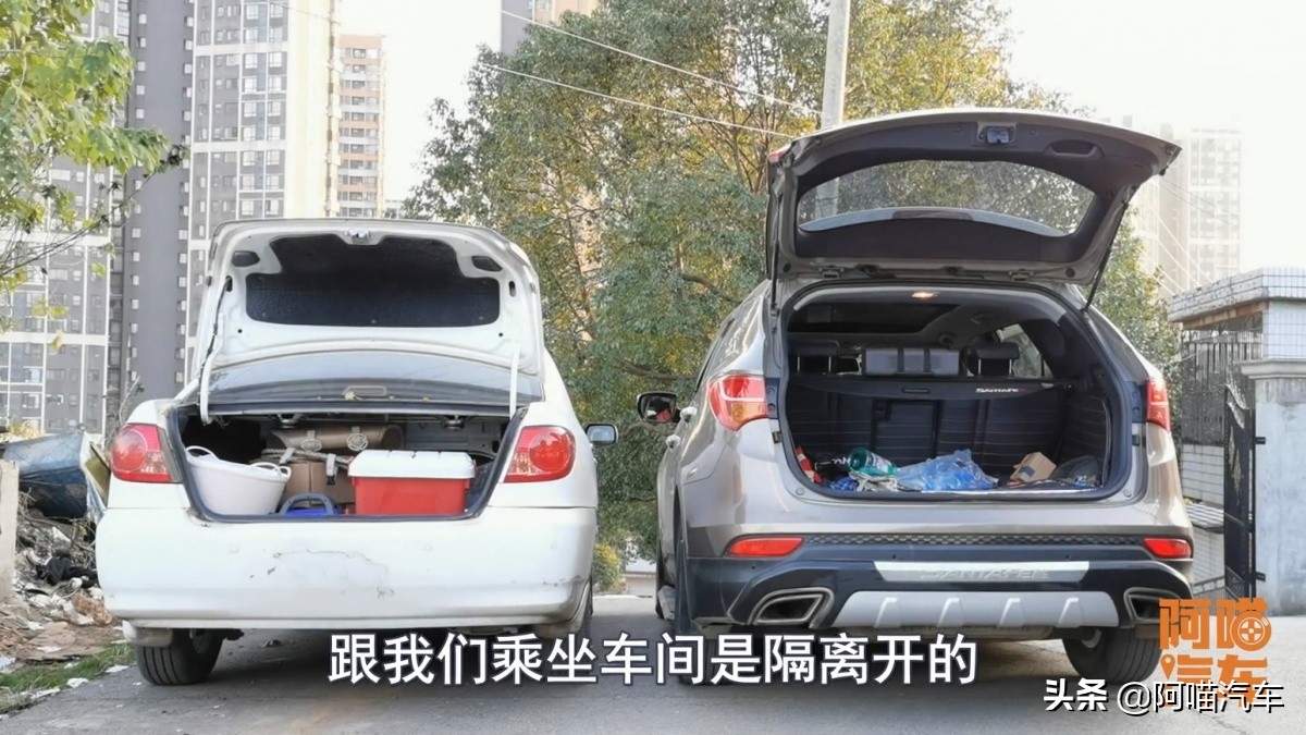 第四点实用性,由于轿车这种三厢车,它的尾箱跟乘员空间是隔离开的,而且尾箱是下沉的,所以轿车对于装大件物品,比起SUV装载能力是没那么强的,尤其是如果喜欢自驾游遇到下雨,轿车拿东西没那么方便,SUV后排座位跟尾箱是连在一起的,取东西用东西很方便。