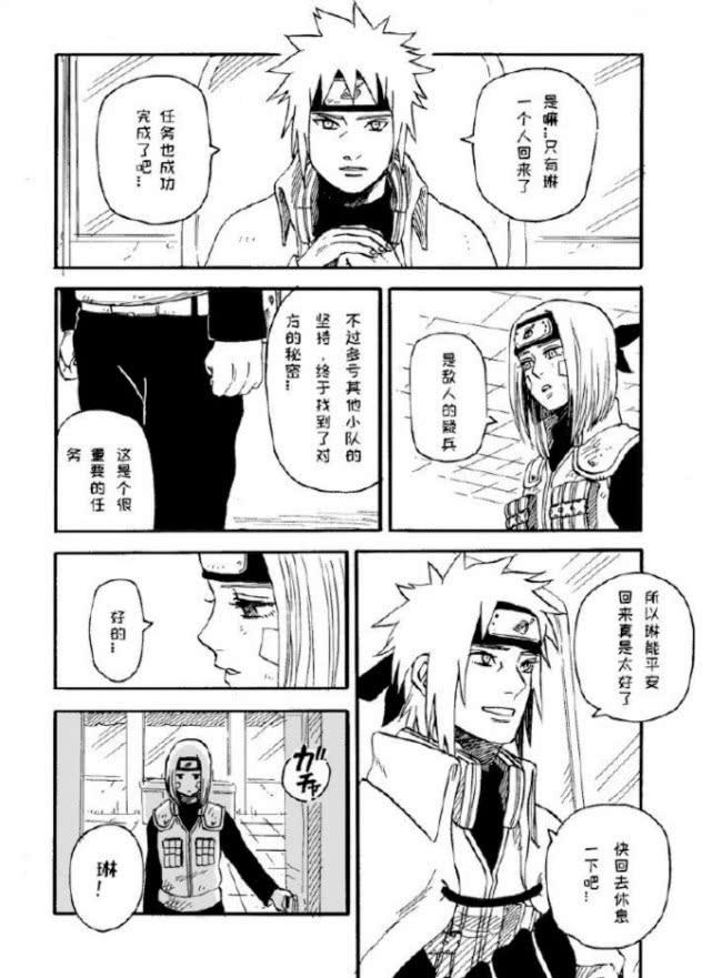 于是没有悬念的,这次的任务只有琳一个人生还,回到木叶村的琳没有被别人瞧不起,因为作为一个医疗忍者,一个女孩子,她已经坚强的回到了木叶,并完成了任务,虽然队友们都牺牲了,但是她有任务在身,不能头脑发热的冲上去为了队友报仇啊!