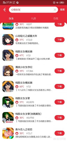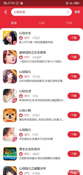 之后,在虫虫助手里搜索“心动女生”,即可看到各种游戏