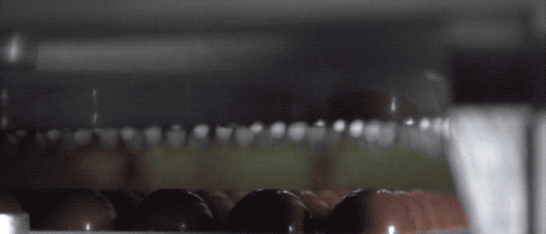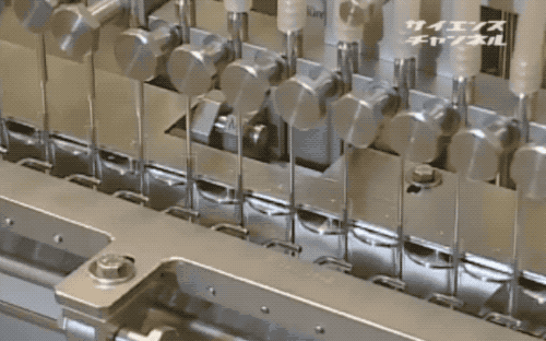 我越发感到这个过程,莫不是巧克力球的注心方式...属于是不同流水线之间,加工工艺的共通性了。整整齐齐的机器自动化,在顶洞里点上一些硬壳巧克力液,再等它一冷却,就搞定了~