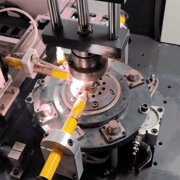 接着,将两个半正方体对接着安放,氩弧焊接一圈,把对着的四条边都焊在一起。
