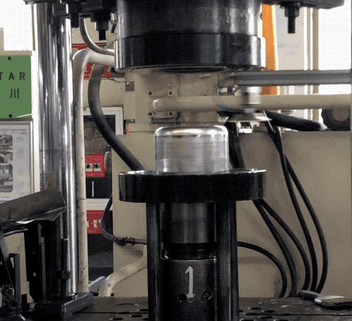 制作锅具就是从一个铝制圆片开始的。铝的可延展性非常好,一次「大力出奇迹」的冲压拉伸,深口锅就锅底朝上成型了!