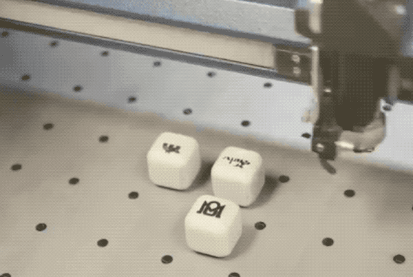有些不锈钢冰块,还会用激光在表面打 logo 或者字样。厂里为了避免加工过程中对不锈钢冰块表面的损害,还会提前裹上涂层,就是下面乳白色这一层。