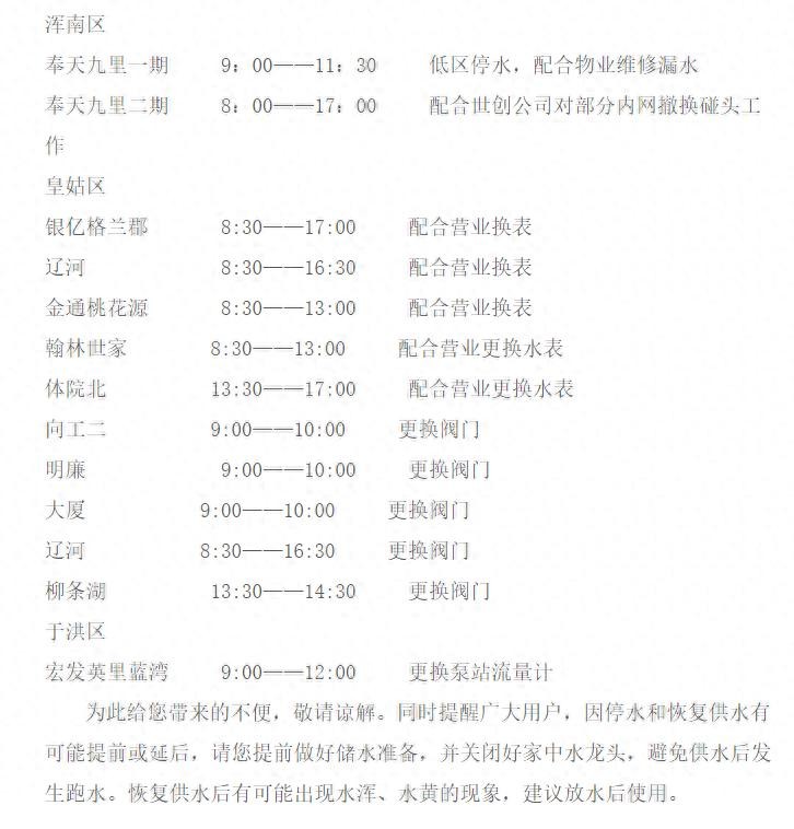 沈阳明天这些区域停水,市民注意提前储水!