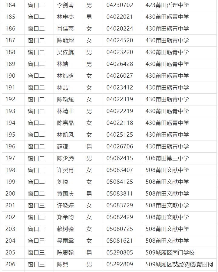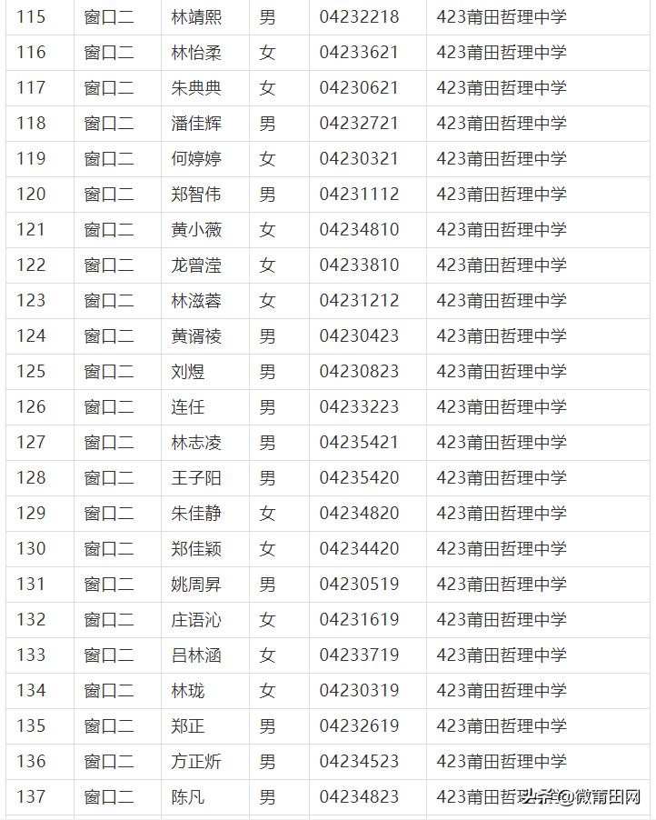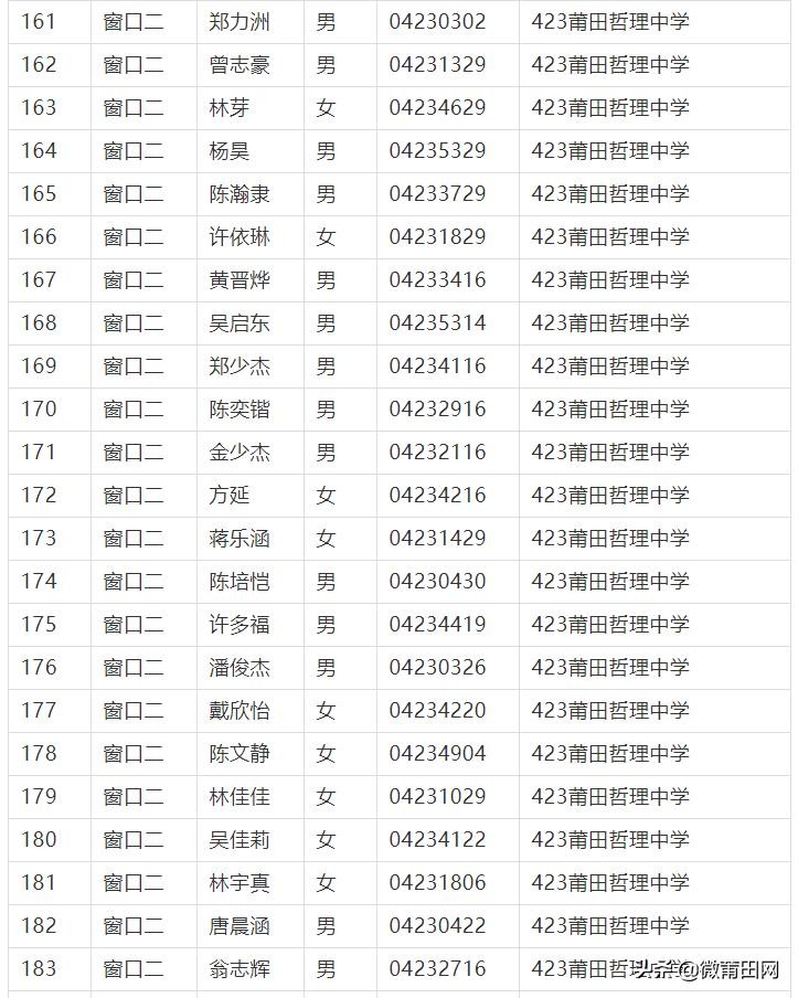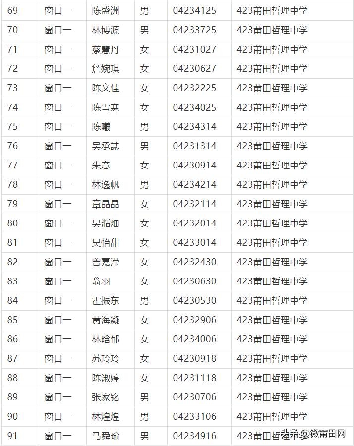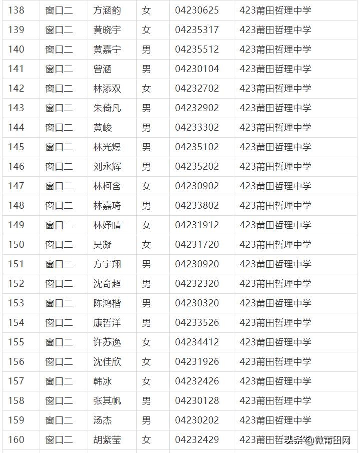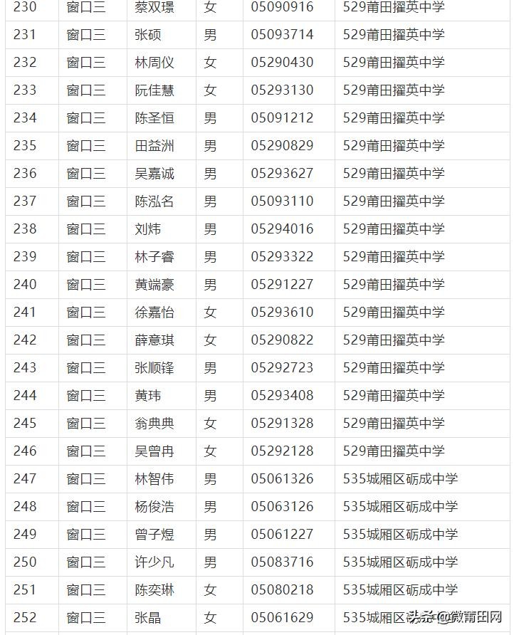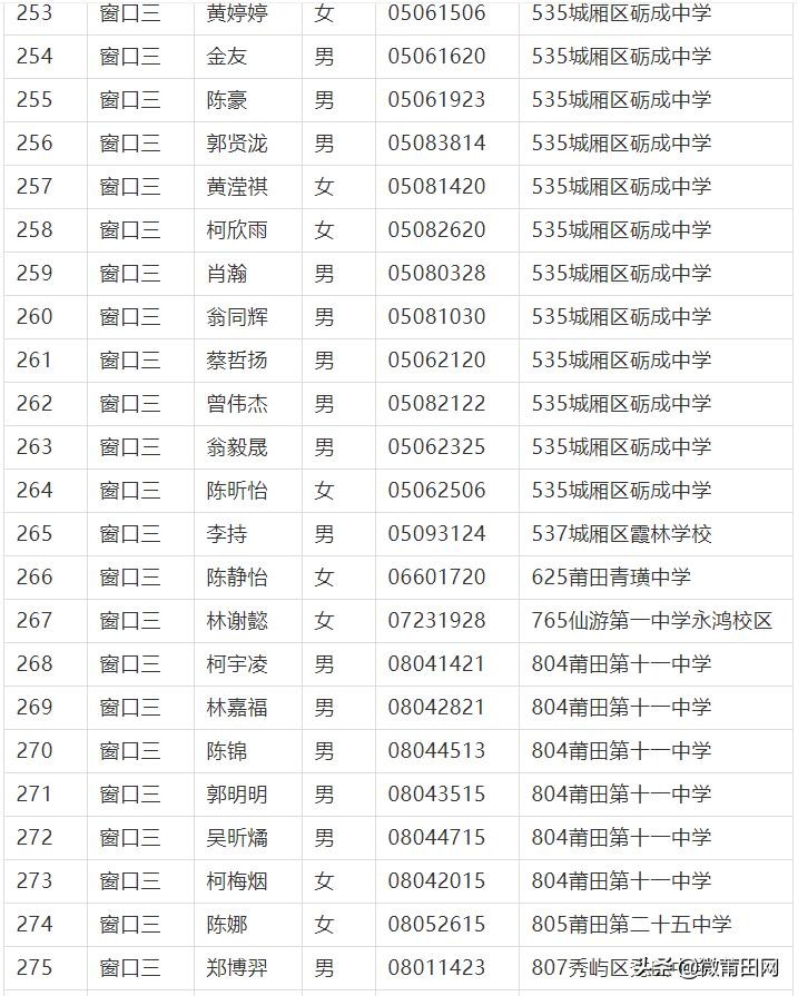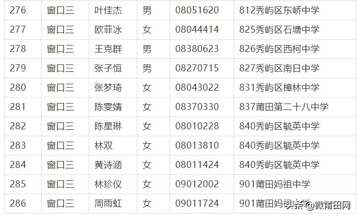 莆田哲理中学2020年秋季高一新生录取名单来了