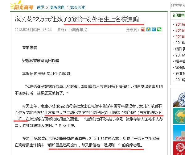 哈哈,没有想到,在阳光高考网,还能找到这样的纪录: