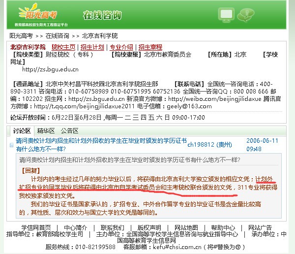 2006年的北京吉利学院,回答计划外招生,发的文凭就是自考文凭!