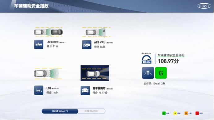 这个车速是40km/h的情况下,主要看路人碰到车辆,对行人头部和腿部的伤害大不大,成绩越好,伤害越小,对路人越友好,这个方面主要体现企业的责任感,因为我们是司机,但同时我们也可能就是路人的行人。成绩G最佳!