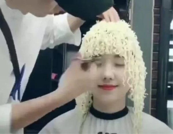 烫了一款方便面头,神似方便面!网友:应该是对时尚有什么误解