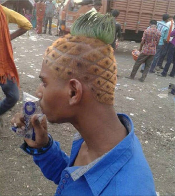 说完“正餐”,还有这款“水果”发型也真的是让人有些不能理解了,这菠萝也真的是太真实了吧。