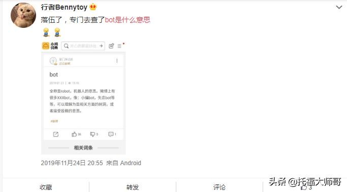 在微博上,也有如我这样的“老年人”在问bot是什么意思?
