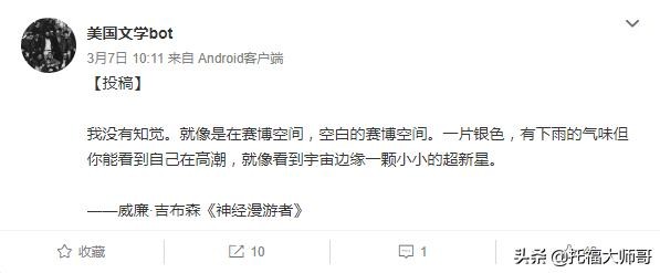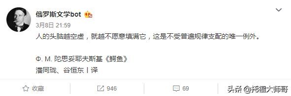 这样我们就理解了,比如账号叫俄罗斯文学bot,我们就知道博主把自己当成了人工的机器人,定期手动更新文章或内容。让网友看起来就像是机器人在更新一样,输出稳定且有规律。