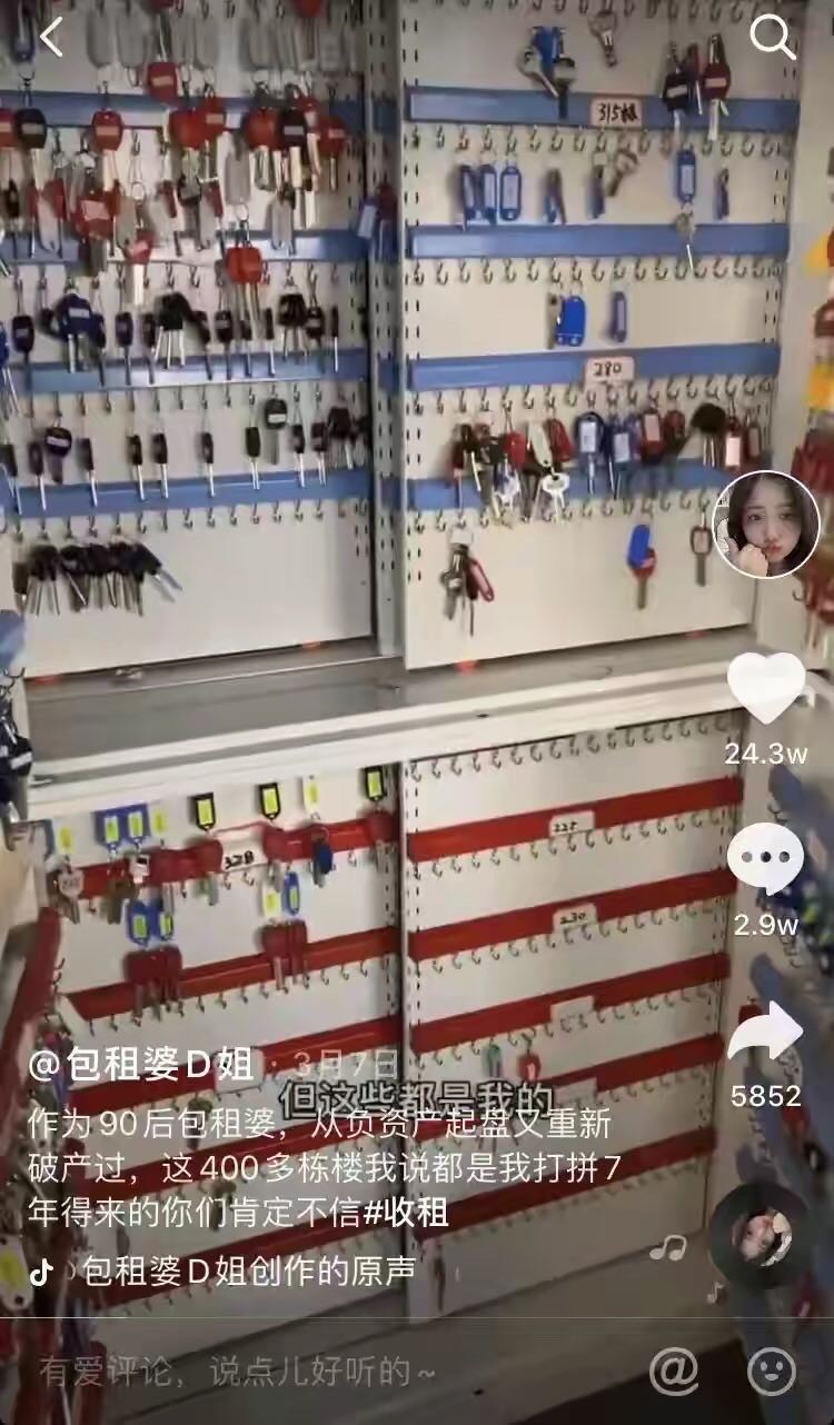 发布后,这几个字眼令“包租婆D姐”迅速走红,原来,这个视频中的重点大家get到了:400栋楼,每栋楼收租50万,收入过亿。