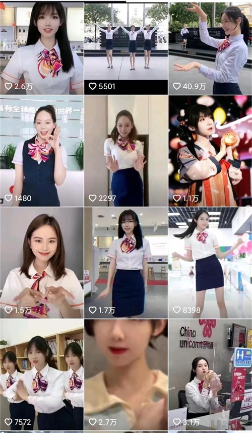 有句话怎么说来着,好不好,全靠同行衬托,如果把椰树集团的视频放在整个行业中去对比,你会发现这根本不是事儿。就连中国联通客服的作品主页都长这个样子:
