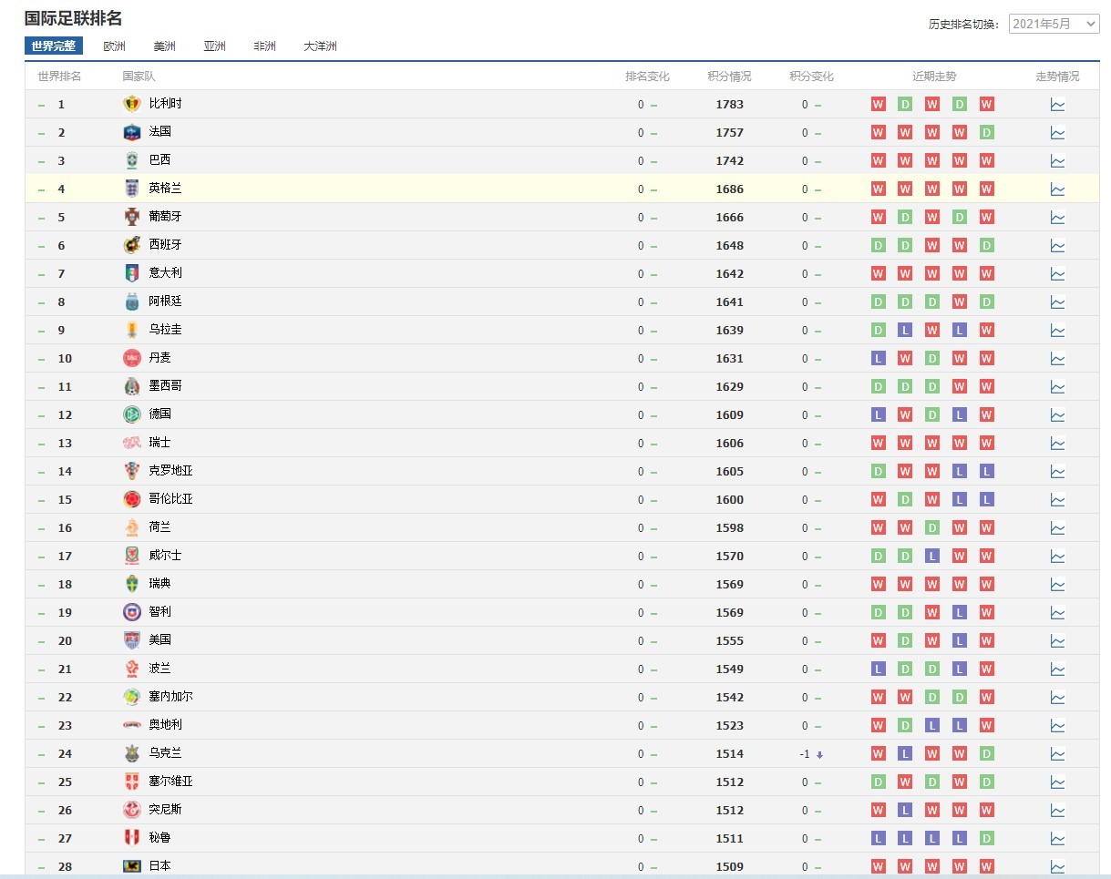 天时加上人和,都使比利时足球排名有实力和机会冲击世界第一。