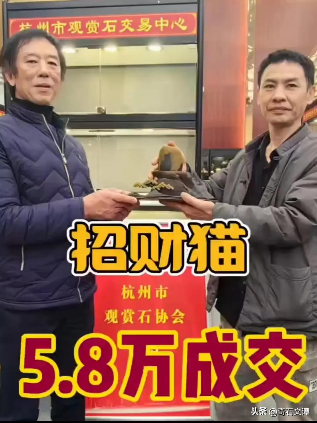 石展第二天有网友爆出一方“招财猫”5.8万成交,受让双方来自业内两位老师,在接下来的7天期待这场盛大的赏石活动传来更多成交数据。