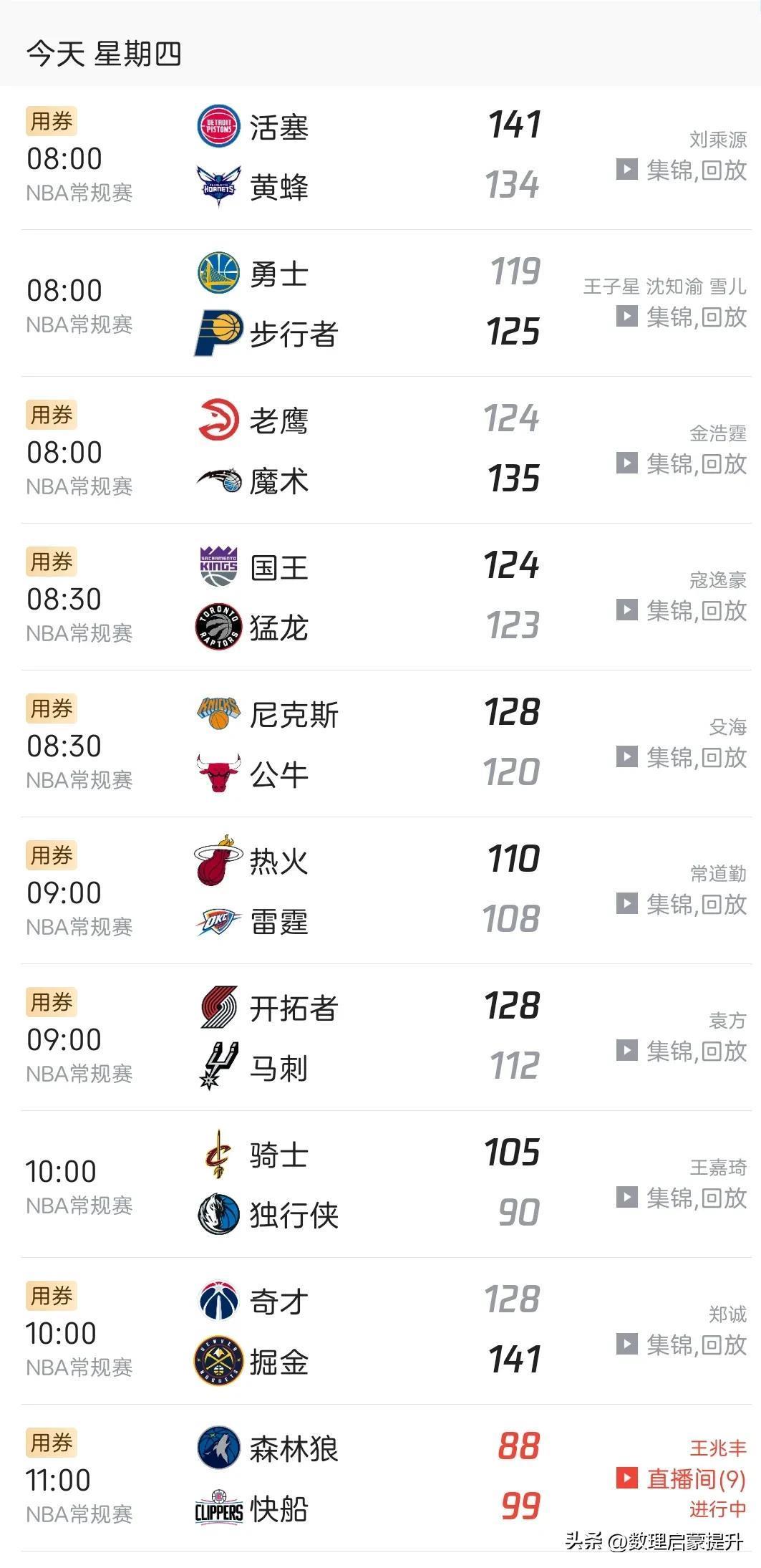 9,奇才VS掘金,7连败的奇才急需反弹止住颓势,可是高原主场,怕是很难攻破
