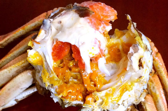 随着母蟹的成长,蟹黄体积会变大,呈鲜艳的橘黄色。蟹膏集中产生于公蟹的过冬时期,由脂肪堆积而成,呈白粘状,蒸熟后为半透明状。