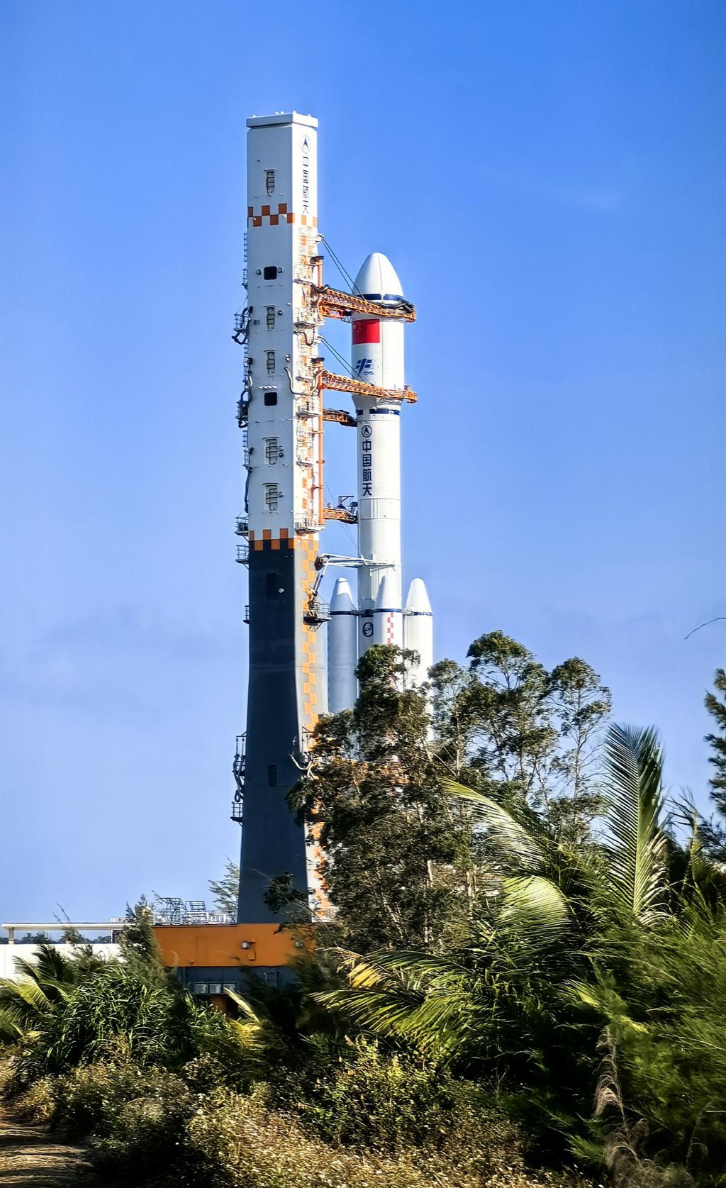 当日上午,天舟七号货运飞船与长征七号遥八运载火箭组合体垂直转运至发射区,将于近日择机实施发射。
