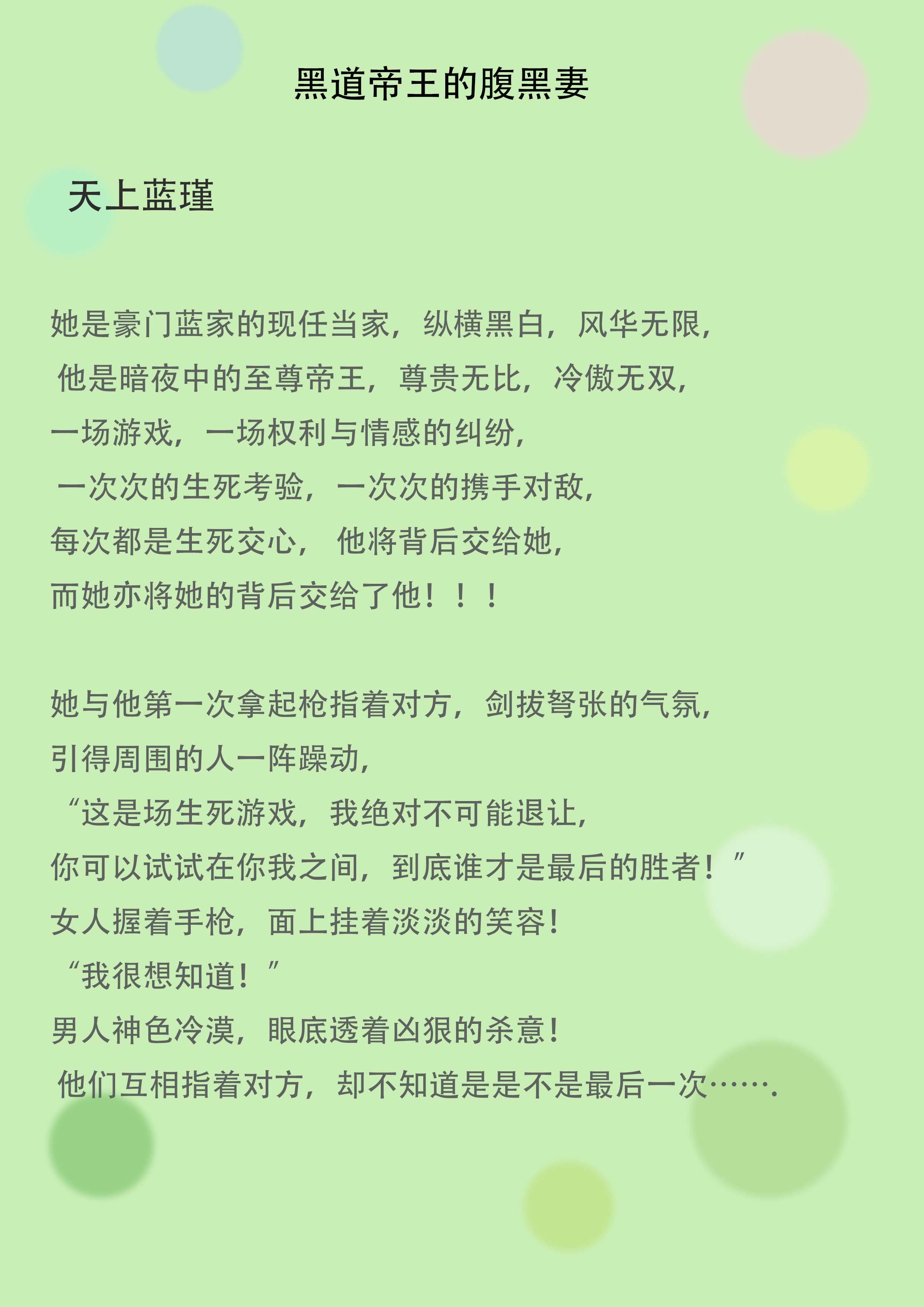 5.黑道帝王的腹黑妻 天上蓝瑾 (道上的对立统一)