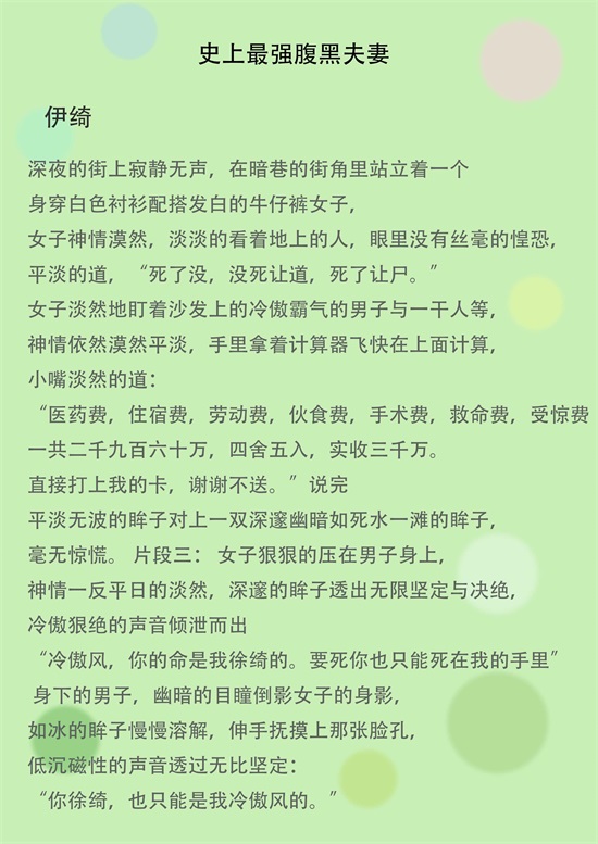1.史上最强腹黑夫妻 伊绮 (女主有马甲,男主...)