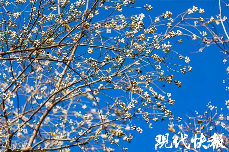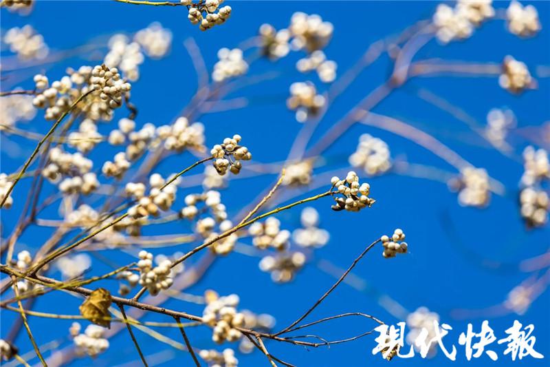 现代快报讯(记者 张然)近日,南京玄武湖公园里朵朵白 " 花 " 绽放,是什么 " 花 " 开在初冬?是你前段时间赏过的乌桕。初冬时节,乌桕叶子红极渐落,洁白的乌桕籽挂满枝头,远远望去,好似朵朵白花缀满枝头。