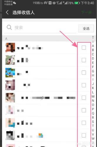7、这以后会出现如下界面,勾选想要发送消息的收件人。
