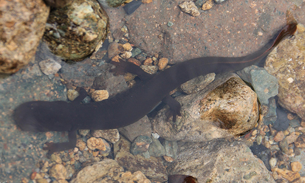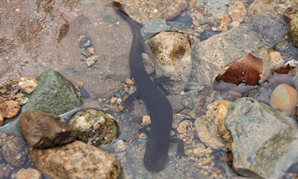 中国大鲵活动在清澈、低温的溪流或者天然溶洞中,栖息在泥中或者阴暗的岩石缝隙中。一般在水流湍急,水质清凉,水草茂盛,石缝和岩洞多的山间溪流、河流和湖泊之中,有时也在岸上树根系间或倒伏的树干上活动,并选择有回流的滩口处的洞穴内栖息,每个洞穴一般仅有一条。洞的深浅不一,洞口比其身体稍大,洞内宽敞,有容其回旋的足够空间,洞底较为平坦或有细沙。