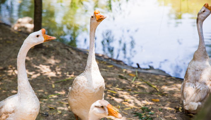 鹅的自我防备意识非常强,只要感受到危险的存在,便大声叫唤,它的嗓音气势足、声音洪亮,对手还未靠近就已经被威慑,所以黄鼠狼在鹅面前通常都是撒腿就跑。鹅的进攻方式都是用自己坚硬的嘴,配合翅膀扇动拍打,娇小的黄鼠狼根本招架不住,只能退避三舍。