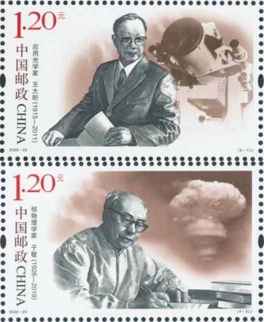 △《中国现代科学家(八)》纪念邮票第1枚王大珩,第4枚于敏
