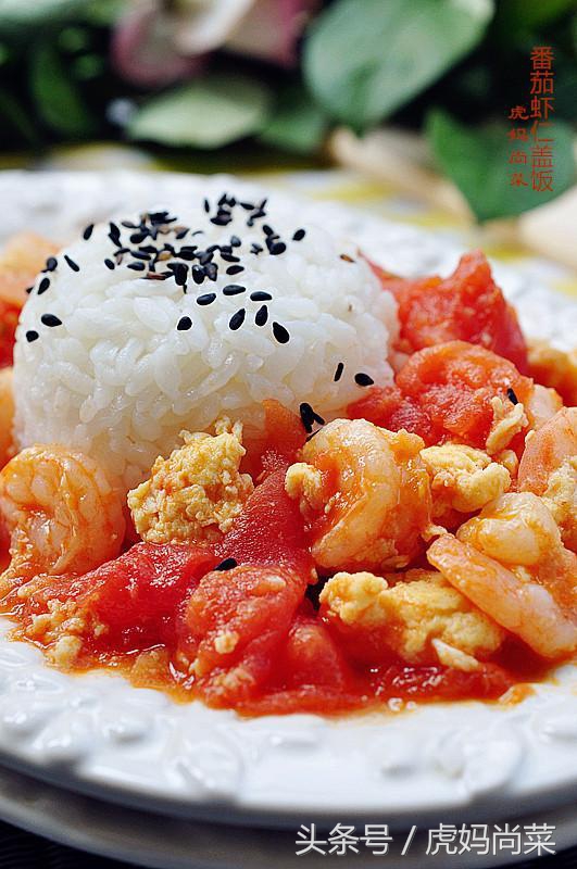 番茄虾仁盖浇饭,酸溜鲜嫩多汁,简单又营养。