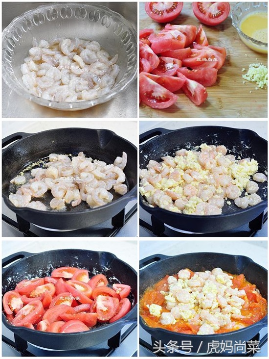 材料:虾仁1袋,番茄3个,鸡蛋2个。