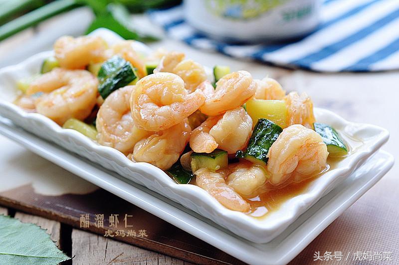 做法;将冻虾仁放入冷水中自然解冻,全部化软后洗净。控水后倒入小半碗料酒,拌匀腌制10分钟。锅中油热,放入葱姜蒜末小火煸炒出香味。捞出虾仁放入,转大火,翻炒至虾仁稍变色,再加入调味料,米醋白糖生抽盐,翻炒均匀。最后加入黄瓜丁,拌匀即可关火。